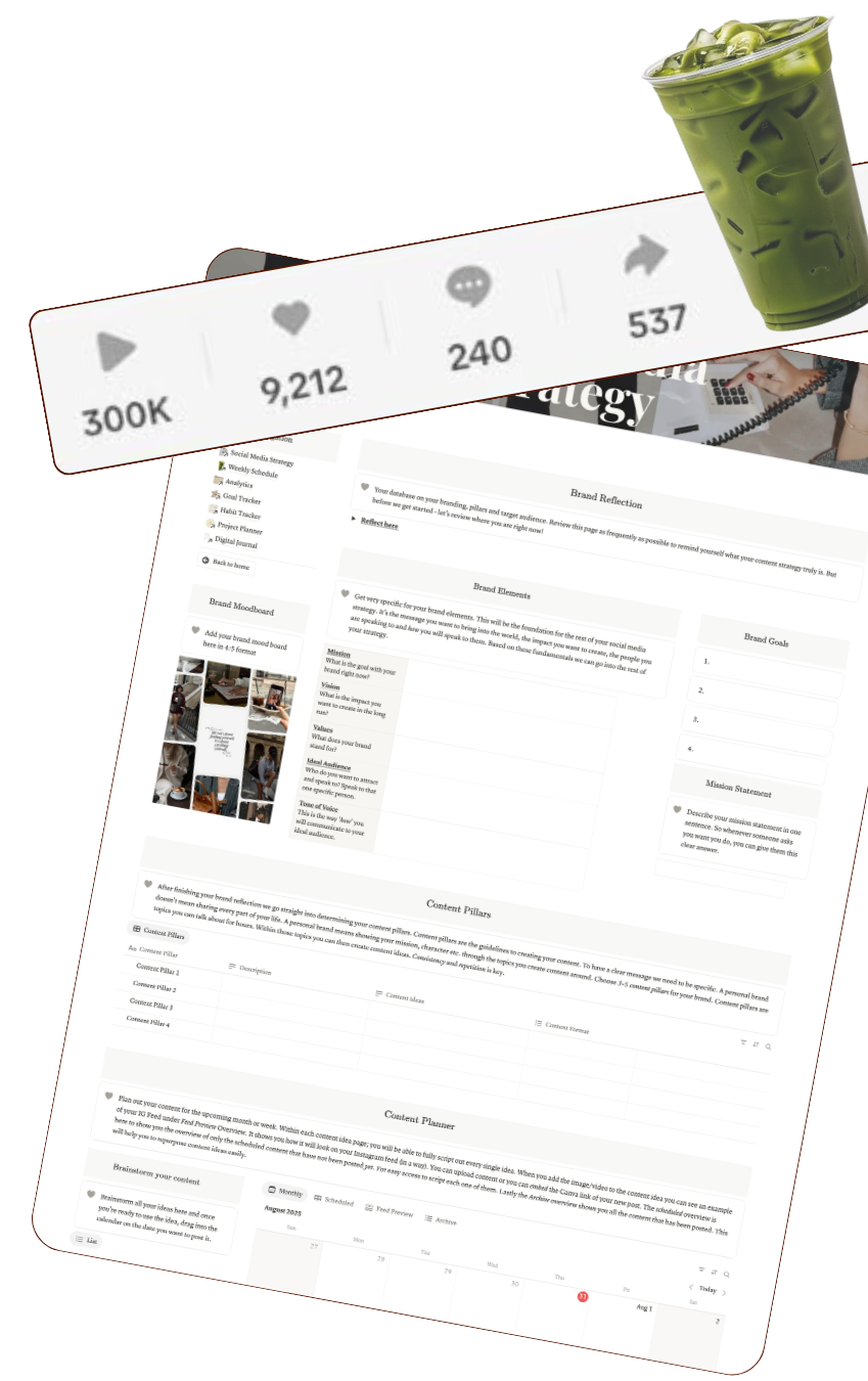 Notion is a productivity platform that helps creators like you manage your work, and create your customized system. However, this planner has been created to support you specifically in building your business, your content journey and to stay consistent with it.